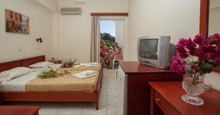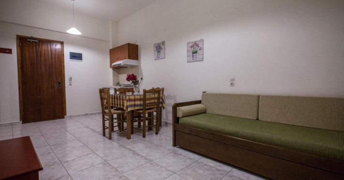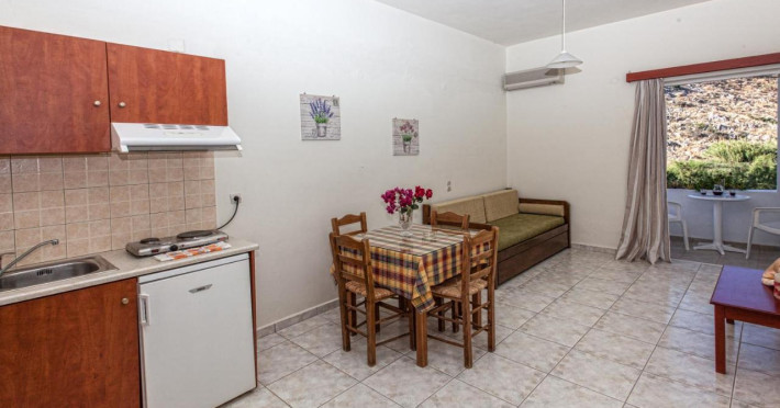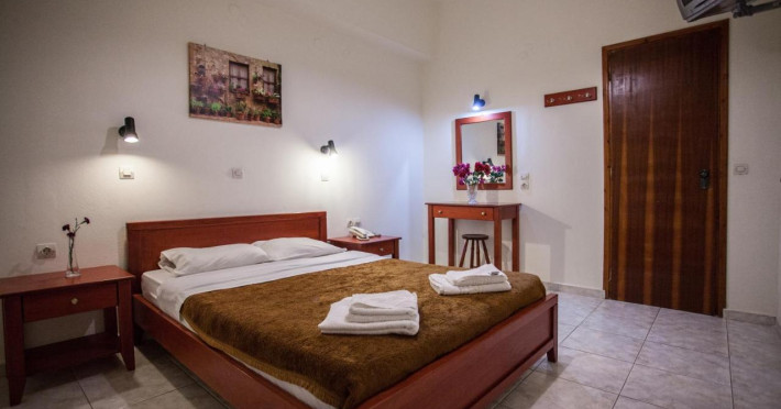 Camerele Hotelului Ammoudi sunt dotate cu aer condiționat, iar apartamentele au chicinetă complet utilată. Micul dejun continental este servit la restaurantul hotelului, care are o vedere frumoasă la mare și grădini.