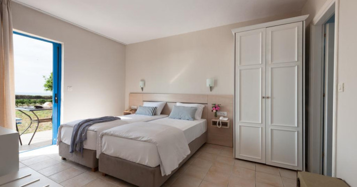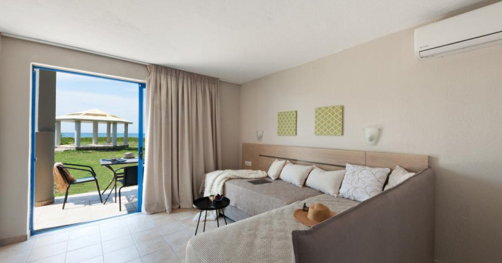 The Ammoudia Maisonettes building-complex is situated on the north coast of Corfu, in location Almyros, near the small town Acharavi, one of the most picturesque on the island of Corfu. It is located by the sea of Almyros, with the sandy beach, hence its name. This particular part of the island is known for its stunning panoramic view of the northwestern part of Corfu, the coast of Albania and the crystal-clear waters of the Ionian Sea. It is 40.00 km from the town of Corfu (about 45 minutes) and 1.0 km from the center of Acharavi. It is easily accessible via the central provincial highway E17, from which starts the municipal road that touches the stadium and ends up on the beach.Datorita dinamicitatii domeniului disponibilitatea ofertelor se modifica de la un moment la altul. De aceea ofertele sunt valabile in limita locurilor disponibile. Agentia nu este responsabila pentru eventualele neconcordante care pot aparea intre informatiile privind tarifele si alte detalii din site si informatiile primite in agentie. In aceste cazuri vor avea prioritate, intotdeauna, informatiile primite in agentie.
