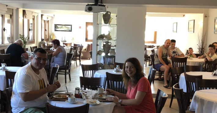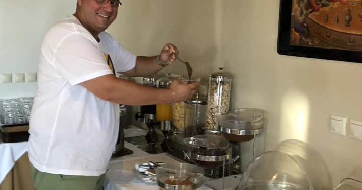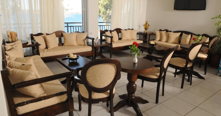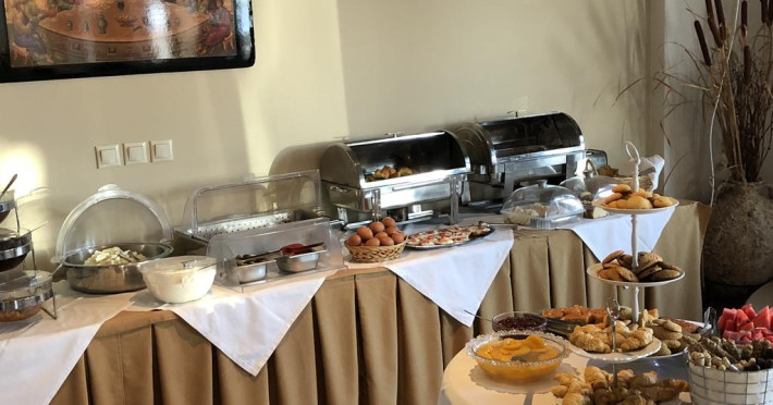 Ammouliani servește zilnic un mic dejun tip bufet în zona de luat masa. La proprietate există un snack-bar care oferă cafea, băuturi și gustări. Masa poate fi servită atât în interior, cît si în aer liber, pe terasă, în funcție de vreme.