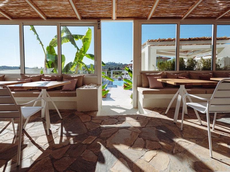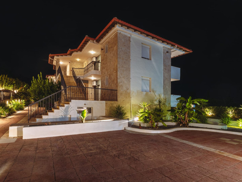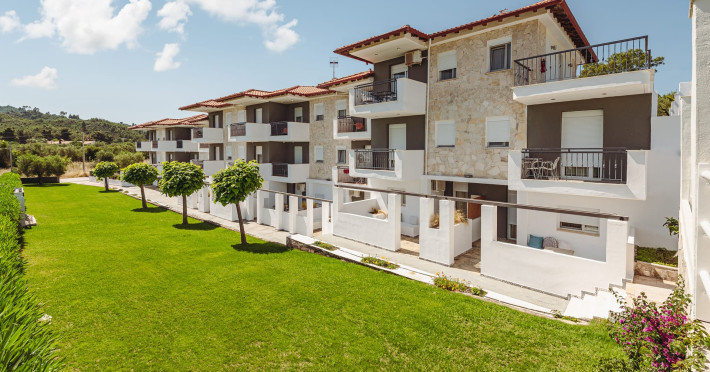 Location This apartment hotel is situated about 800 m from the beach, in a quiet location some distance from the city centre – ideal for those who appreciate tranquility or would like to stroll through Hanioti. Guests can reach bus routes within about 550 m. Facilities The apartment hotel was modernised in 2019. The hotel has 25 apartments. English-speaking staff at the reception desk in the lobby are ready to assist you with check-in and check-out. Guests receive a welcome drink upon arrival. Amenities include a baggage storage service and a safe. Wireless internet access in public areas allows guests to stay connected. A garden provides extra space for rest and relaxation in the open air. Guests arriving by car can park their vehicles in the car park for a fee (subject to availability). Other services include a car hire service, medical assistance and a transfer service. Active guests can make use of the bicycle hire service (for a fee) to explore the surrounding area. A photocopier is available for guests' business needs. Rooms Rooms feature a living area and a bathroom, and air conditioning ensures just the right temperature. Guests can enjoy the garden view from a balcony or terrace. Separate bedrooms are available. All comfort rooms have 1 King or 2 single beds. All executive rooms have 1 king and 1 single bed or 3 single beds. For extra adult/child in comfort or executive rooms we are placing an extra bed upon request for a fee. Guests may securely store their valuables in a safe. The kitchenette comes with a mini fridge and a stovetop. Other features include a telephone, a flatscreen television and WiFi (no extra charge). Slippers are included. Bathrooms are equipped with a shower and a hairdryer. For extra comfort in the bathrooms, guests are offered cosmetic products. 1 family room is available for parents with children. Sports/Entertainment The outdoor pool complex provides invigorating refreshment. A terrace with sun loungers and parasols is available. The hotel offers a variety of outdoor sports, including jogging. For a fee, guests can also enjoy fishing and horse riding. For sports enthusiasts who wish to work out indoors, pilates is available for a fee. Guests can relax and unwind in the wellness area (massage treatments). Third-party operators offer massage treatments. Meals There is a bar on the premises. Bed and breakfast is offered as a catering option. A continental breakfast buffet guarantees a great start to the day. Special meals, including vegetarian dishes, are also available. The apartment hotel also offers snacks. For a fee, there are also non-alcoholic beverages and alcoholic beverages. Payment The hotel accepts the following credit cards: VISA and MasterCard.Datorita dinamicitatii domeniului disponibilitatea ofertelor se modifica de la un moment la altul. De aceea ofertele sunt valabile in limita locurilor disponibile. Agentia nu este responsabila pentru eventualele neconcordante care pot aparea intre informatiile privind tarifele si alte detalii din site si informatiile primite in agentie. In aceste cazuri vor avea prioritate, intotdeauna, informatiile primite in agentie.