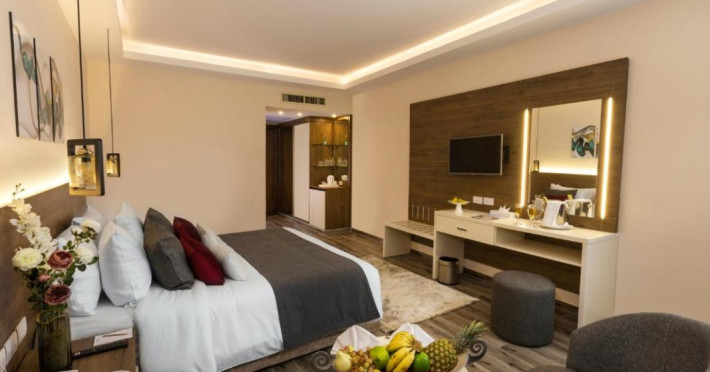 The hotel Amwaj Oyoun Resort Spa**** is located approximately 250 m from the private sandy/rocky beach. The old town is around 30 km away. There is a shuttle between the hotel and the airport (for a fee). The beach is patrolled by a lifeguard. HereThe hotel Amwaj Oyoun Resort Spa**** is located approximately 250 m from the private sandy/rocky beach. The old town is around 30 km away. There is a shuttle between the hotel and the airport (for a fee). The beach is patrolled by a lifeguard. Here, there are cushions, sun umbrellas and beach towels available. At the beach there is a bar serving refreshing drinks. There is also a promenade here where you can go for a stroll. The seasonally air-conditioned, GPS-verified hotel is equipped with a 24h reception (check-in is possible around the clock), a lobby bar, Wi-Fi (for a fee), internet access, a supermarket and other shops, a boutique, cash machine, a hairdresser, a jacuzzi, a first aid kit, parking spaces as well as a TV lounge with satellite TV. In the outdoor area of the property you will find a garden as well as a seasonally heated and supervised pool, where sun loungers, sun umbrellas and pool towels are available for free. There is also a separate childrens pool with 3 water slides. Furthermore, outside you can find a roof terrace. You can store your valuables in the safe, and your luggage in the hotels storage room. For your entertainment, the hotel offers a library/reading room, a theatre and a casino. For the young hotel guests there is a playground. For the smallest children prams can be rented in the hotel. There is also a laundry service available at an additional cost to customers. Ironing equipment can be rented at the hotel for a fee. For your comfort, in addition to the concierge service the hotel page will ensure you are looked after. If necessary, you can contact the medical centre at any time (for a fee). For conventions and other business meetings, the hotel offers a business centre as well as EXTRA_FEE (auditorium-style) conference rooms with a total of 60 seats, a reception, tables, a video projector, printer, overhead projector as well as a catering and translation service. A photographer can also be ordered from the hotel for business events. If you want to explore the holiday region, you can use the car rental service close to the hotel (extra fee). For guests on their honeymoon, the hotel has special offers such as personalised rooms/articles, rooms with a particularly romantic location and view, special honeymoon packages, romantic dishes in the restaurant, a present, a basket of fruit or flowers in the room. In your hotel, a lot of focus is placed on sustainability. This includes waste segregation in the rooms, the hotels own recycling bins, the provision of soap and shampoo dispensers, ecological meals and environmentally-friendly cleaning. That is why the hotel Amwaj Oyoun Resort Spa**** was also awarded a sustainability certificate. The hotel requires that all guests pay a deposit upon arrival. American Express is accepted as means of payment. Catering As catering services the hotel offers all-inclusive, full board and self-catering. Breakfast is offered American, continental, from the buffet or as brunch. Enjoy your lunch from the buffet. Dinner is also served as a buffet or à la carte. As part of the all-inclusive service, local alcoholic beverages (24h) as well as international alcoholic beverages (unlimited) are available at no extra charge. For the meals, there are a buffet restaurant with terrace (Italian, Mediterranean, calorie-reduced and vegetarian dishes) and several bars as well as the pool bar. The drinks menu of the hotel includes coffee and tea and 24h international alcoholic beverages. For dinner, guests are asked to wear appropriate clothing in the restaurant. Distances Discotheque: approximately at 1 km Airport: approximately at 9 km Sports amp; Leisure To keep your fitness up on holiday, there is a gym (open 24 hours a day) for guests to use. For an fee, you can take advantage of various water sports, such as bananaboats. If you dont want to miss out on training with a ball during your holidays, youll find a football pitch. During your holiday you can also take part in aerobics and yoga courses. With beach volleyball, volleyball and boccia various other sports offer a lot of variety on holiday. In addition to a tennis court (hard court) with floodlighting there is also a tennis rental. Furthermore, various water sports such as sailing, snorkelling and diving (including rental service) are offered in the area. Beginners as well as advanced divers can improve their skills under water with an instructor at a diving school. A sauna (extra fee) and a wellness shower await you in the. The hotel also offers massages (extra fee) and beauty treatments (extra fee). In addition, nutritional advice is offered. Infants can be looked after in the hotels own baby club. There is a babysitting service (extra fee) in the hotel, so that adults can also find some time to relax. In terms of adult entertainment, evening shows and live music are presented. Additional information The 3-storey hotel has a total of 465 rooms. This hotel is gay-friendly. The hotel staff speak English, German, French, Italian, Russian, Dutch, Spanish, Arabic and Polish.Datorita dinamicitatii domeniului disponibilitatea ofertelor se modifica de la un moment la altul. De aceea ofertele sunt valabile in limita locurilor disponibile. Agentia nu este responsabila pentru eventualele neconcordante care pot aparea intre informatiile privind tarifele si alte detalii din site si informatiile primite in agentie. In aceste cazuri vor avea prioritate, intotdeauna, informatiile primite in agentie.