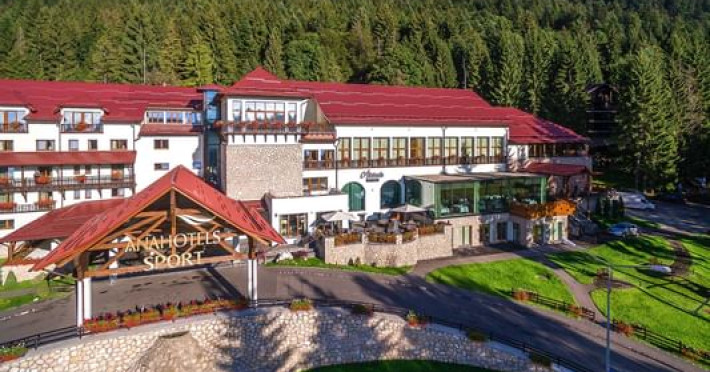 DestinaÅ£ie la inalÅ£ime:Aflat in inima munÅ£ilor, la baza partiilor de schi din moderna staÅ£iune Poiana BraÅov, Ana Hotels Sport este o relaxanta destinaÅ£ie de vacanÅ£a in orice anotimp si o locatie privilegiata pentru evenimente. Descopera fascinanta Transilvanie, cu oraÅul medieval BraÅov, celebrul Castel Bran Åi Castelul PeleÅ, fosta reÅedinÅ£a regala, la caÅ£iva kilometri distanÅ£a.EleganÅ£a nobila Åi naturala:Cu o spectaculoasa panorama asupra staÅ£iunii, camerele cu balcon impletesc atmosfera calda a stilului bavarez cu noul design ultra-modern. Descopera spaÅ£ioasele camere King Deluxe sau rasfaÅ£a-te in jacuzzi in decorul exclusivist cu acces spre living al apartamentelor prezidenÅ£iale. Gusta magia deliciilor culinare la Restaurantul Altitude Åi retrage-te la lobby bar sau in ambianÅ£a intima de la Oxygen Lounge pentru a savura un ceai sau o bautura racoritoare.Sport, relaxare Åi rasfaÅ£:Ana Hotels Sport este o eleganta destinaÅ£ie de ski-in/ski-out, la caÅ£iva paÅi de partia Bradul. Bucura-te de cel mai mare domeniu schiabil din Romania Åi de provocarea sporturilor de iarna alaturi de instructorii Ana Ski School, cea mai premiata Åcoala de schi din regiune. Peisajul hibernal devine vara paradisul verde al pasionaÅ£ilor de drumeÅ£ii montane Åi nordic walking. Dupa o aventura in inima munÅ£ilor, relaxeaza-te la Sport Spa, la piscina interioara sau in ineditul Hot Tub exterior.Datorita dinamicitatii domeniului disponibilitatea ofertelor se modifica de la un moment la altul. De aceea ofertele sunt valabile in limita locurilor disponibile. Agentia nu este responsabila pentru eventualele neconcordante care pot aparea intre informatiile privind tarifele si alte detalii din site si informatiile primite in agentie. In aceste cazuri vor avea prioritate, intotdeauna, informatiile primite in agentie.