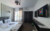Profil: Relaxare si confort Localizare: Unitatea se afla localizata in partea de sud a statiunii Costinesti in imediata apropriere a parcului de distractii si gara. Traversand linia ferata se afla Teatrul de vara Costinesti, terasa White Horse si Disco Ring. Cea mai apropriata plaja se afla cea din zona Obeliscului, urmand din zona Disco Tineretului. Descriere: Toate camerele sunt dotate cu TV LED sau LCD. Vila Anacris Guesthouse ofer camere cu aer conditionat si WiFi gratuit. De asemenea, camerele includ un minibar . Bile private sunt prevzute cu cabin de dus. Oaspetii au la dispozitie o teras si facilitti de grtar. Camere: Unitatea dispune de 3 tipuri de camere: - camere duble - Camerele duble sunt pozitionate la parter, etajul 1 si etajul 2. Toate camerele au paturi duble matrimoniale. Camerele duble au in dotare baie privata cu cabina de dus, paturi matrimoniale, TV cu ecran plat, aer conditionat, mini frigider, seif, internet WiFi. Capacitatea de cazare este de 2 persoane. In cazul in care exista a treia persoana in camera, se adauga un pat suplimentar contra cost. Fumatul nu este permis in camere. - camere duble superioare - Camerele duble superioare sunt pozitionate la etajele 3 si 4, cu priveliste inspre nord-est, vzandu-se in zare si marea. Toate camerele au paturi duble matrimoniale de 1,60 m. Fiecare camer are un mic balconas pe care se afla uscatorul de rufe. Camerele duble superioare au in dotare baie privata cu cabina de dus, paturi matrimoniale, dressing-uri, TV cu ecran plat, aer conditionat, mini frigider, seif, internet WiFi. Capacitatea de cazare este de 2 persoane. In cazul in care exista a treia persoana in camera, se adauga un pat suplimentar contra cost. Fumatul nu este permis in camere. - camere duble executive - Camerele executive sunt pozitionate la etajele 3 si 4, cu priveliste ctre mare. Au balcon privat dotat cu mas si 2 scaune uscator de rufe. Camerele executive sunt cele mai spatioase camere din locatie, fiind ideale pentru familiile cu copii. In camera exista si o canapea extensibila care se poate extinde la cerere. Capacitatea maxim de cazare este de 3 adulti sau o familie cu 2 copii. Camerele duble executive au in dotare baie privata cu cabina de dus, pat dublu matrimonial de 1.60 m, TV cu ecran plat, o canapea extensibila, aer conditionat, mini frigider, seif, internet WiFi, balcon. Fumatul nu este permis in camere. Servicii de masa: Nu dispunem de facilitati pentru gatit. Unitatea pune la dispozitie: espressor, cana electrica, cuptor cu microunde si barbeque. Parintii au posibilitatea de a incalzi laptele copiilor si de a le pregati gustari rapide. Gratarul poate fi folosit pana la orele 22:00 si este necesar sa achizitionati lemne si carbuni. Politici copii: Gratuit! Un copil cu varsta pan la 6 ani st gratis cand sunt folosite paturile existente Copiii cu varsta peste 6 ani sau a treia persoana adulta in camera achita 25% din tariful camerei si beneficiaza de un pat suplimentar. Disponibilitatea paturilor suplimentare trebuie verificata in prealabil. Animale de companie Animalele de companie nu sunt acceptate. La proprietate sunt disponibile locuri de parcare in exterior. Check-in / check-out Cazarea se face incepand cu ora 15:00 pana la ora 22:00, iar eliberarea camerei cel tarziu la ora 11:00.Datorita dinamicitatii domeniului disponibilitatea ofertelor se modifica de la un moment la altul. De aceea ofertele sunt valabile in limita locurilor disponibile. Agentia nu este responsabila pentru eventualele neconcordante care pot aparea intre informatiile privind tarifele si alte detalii din site si informatiile primite in agentie. In aceste cazuri vor avea prioritate, intotdeauna, informatiile primite in agentie.