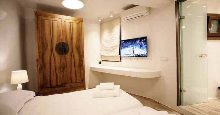 Mykonos, situat in zona pietonala a orasuluiLocalizare