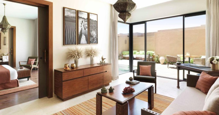 Cele 115 camere și vile de lux au vedere la canionul dramatic sau la grădinile liniștite și includ o baie tip spa cu un duș cu efect de ploaie. Vilele luxoase le oferă oaspeților o evadare intimă, fiecare cu servicii de gazdă personalizate și o piscină infinită privată cu vedere la stanci sau ascunsă intr-o grădină exotică. Fiecare vilă are IPTV LED interactiv ultramodern și zone de dressing spațioase, sporind sentimentul de lux sublim.