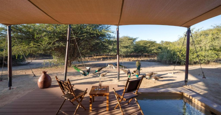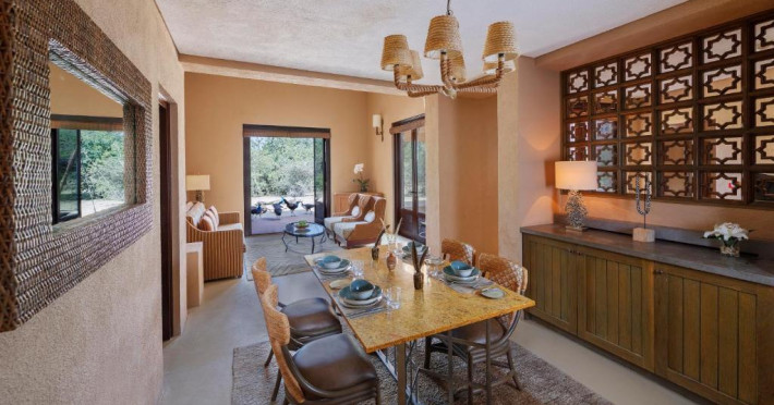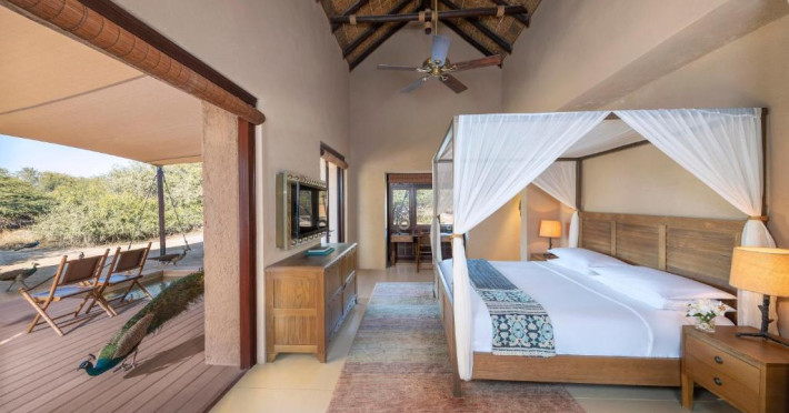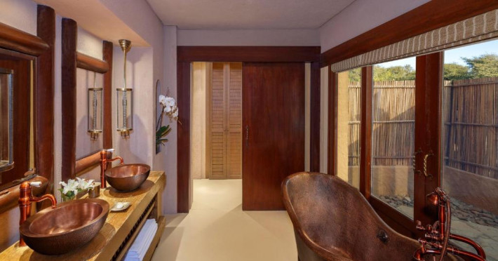 Furnished with an African décor, air-conditioned villas come with a minibar and a terrace. Private bathrooms include a bath, shower and free toiletries.
