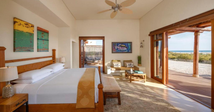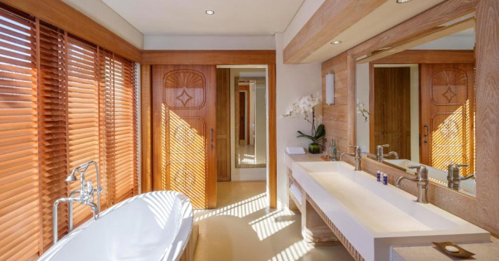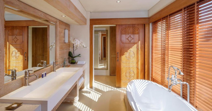 The air-conditioned villas are decorated in soft tones and fitted with wooden furniture. It features a seating area with a flat-screen TV, and a terrace that overlooks the sea or mangroves. Some villas include a private pool. A shower and bath are included in the bathroom.
