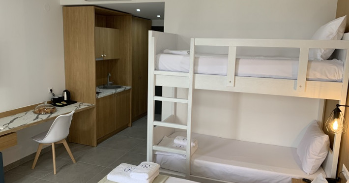 Camerele sunt dotate cu baie proprie, chicineta, TV LCD, Aer conditionat (inclus in pret), Wi-Fi, minifrigider. Toate camerele au balcon.