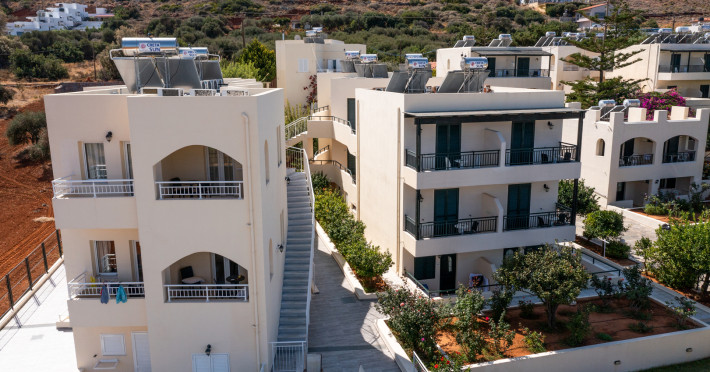 Modern, family-run complex is set just 450m away from one of the most beautiful beaches on the island. 25 mins drive – 30 km from Heraklion Airport (HER) N. Kazantzakis and 2h & 30mins drive – 177 km from Chania International Airport (CHQ) “Ioannis Daskalogiannis”.
