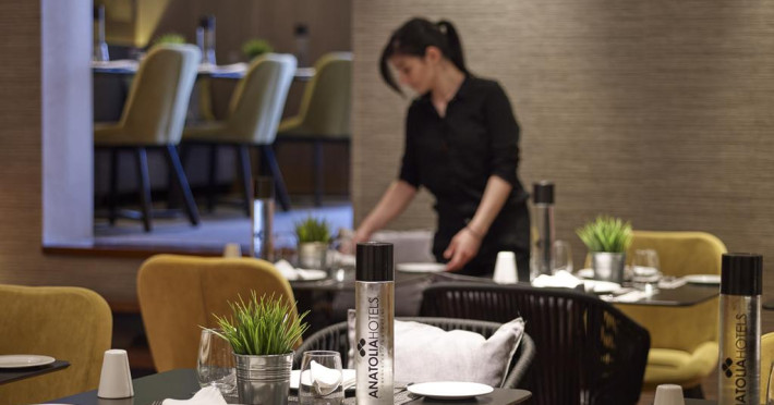 La Anatolia oaspeții au la dispoziție un restaurant care servește mâncare à la carte. Preparate din bucătăria grecească așteaptă să fie degustate în fiecare zi. Masa poate fi servită atât în interior, cît si în aer liber, pe terasă, în funcție de vreme. Oaspeţii pot avea diverse băuturi răcoritoare sau alcoolice la bar.