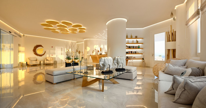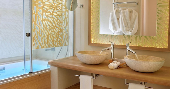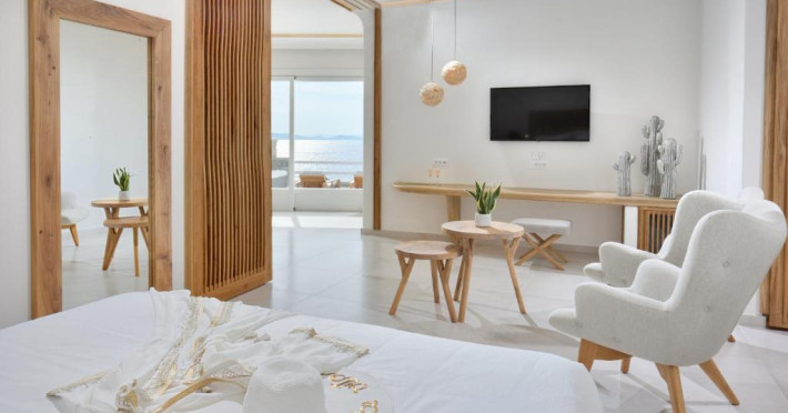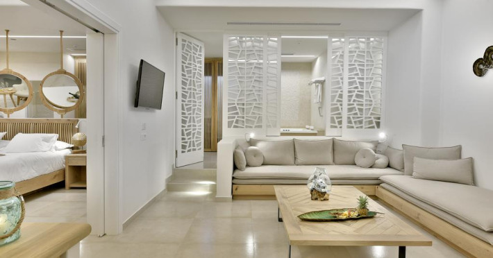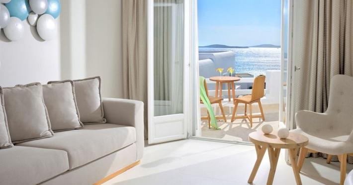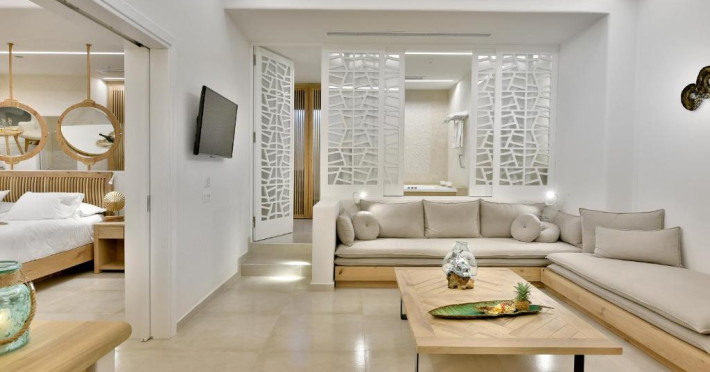 Aparatul de aer condiționat creează o atmosferă plăcută în camere. În majoritatea spațiilor de cazare clienții beneficiază de vedere spre mare de pe balcon sau de pe terasă. Camerele dispun de un pat dublu și de o canapea. Sunt disponibile dormitoare separate. Paturile suplimentare sau paturile pentru copii sunt disponibile pentru cei mici contra cost. De asemenea, sunt disponibile un seif, un minibar și un birou. Echiparea de bază cuprinde de asemenea și un aparat pentru cafea/ceai. Clienții au parte de mai mult confort și datorită setului de călcat. În plus, există un telefon, un televizor cu ecran plat cu canale prin satelit și WiFi (gratuit). În cameră se găsesc și papuci de casă. Băile sunt dotate cu un duș, o cadă și o cadă cu hidromasaj. Un uscător de păr și halate de baie stau la dispoziție pentru folosința zilnică. Se oferă spre rezervare camere adaptate pentru scaun cu rotile.