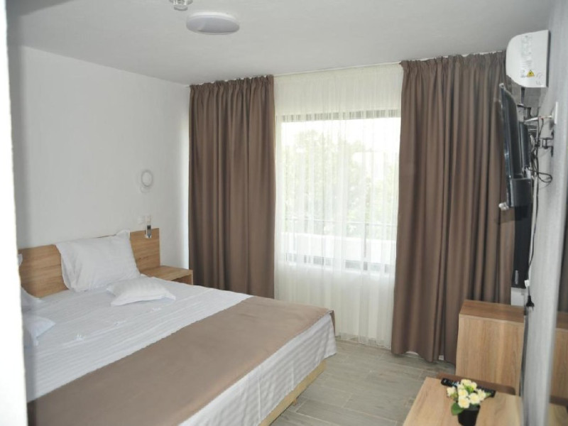 Camerele duble sunt dotate cu 2 paturi twin unite de 100x200 (ce se pot desparti la nevoie), tv, wi fi, frigider, aer conditionat, balcon, podele de gresie, baie cu dus, uscator de par si obiecte de toaleta. Suprafata 20 mp.