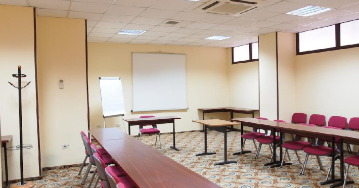 Facilitati: Hotelul dispune de parcare proprie, un bar propriu si doua sali de conferinte dotate cu flipchart, ecran proiectie, videoproiector, retroproiector, internet wireless.