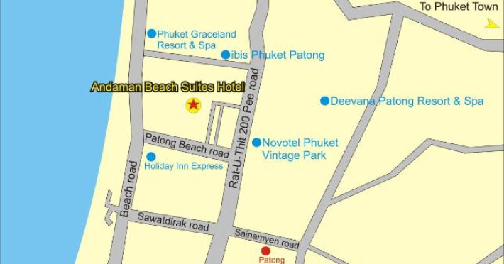 Centrul comercial Jungceylon si zona animată Bangla Road se află la 15 minute de mers pe jos de Hotelul Beach Suites. Aeroportul Internațional Phuket este situat la 45 de minute de mers cu mașina.