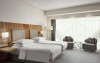 Camerele de la Andaz Capital Gate Abu Dhabi sunt dotate cu aer condiționat, Tv cu canale prin satelit și seif. Fiecare cameră dispune de minibar și cană-fierbător. Oaspeții pot solicita serviciul de room service pentru a servi masa sau diverse băuturi. În camere există baie cu cadă sau duș ce are în dotare foehn și articole de toaletă gratuite. Oaspeții au acces gratuit la serviciul Wi-fi în camere. Curățenia in cameră se face zilnic.
