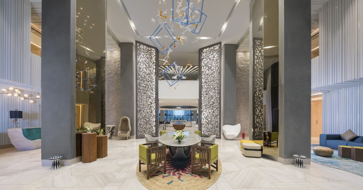 Andaz Dubai The Palm â A Concept By Hyatt Capturing Dubais eclectic style and heritage, Andaz Dubai The Palm is a boutique hotel conveniently located on the trunk of Palm Jumeirah. Presenting 217 guest rooms including 34 suites, every room weaves the sights, sounds and flavours of Arabia into the design. Enjoy floor to ceiling windows boasting panoramic city or sea views, complimentary mini bar including soft drinks and snacks and luxury amenities. Guests will be spoilt for choice with four unique restaurant concepts, state of the art recreational facilities, Ora boutique spa, 300-meter private beach, swimming pool and a separate adult only Cabana Pool. HYATTDatorita dinamicitatii domeniului disponibilitatea ofertelor se modifica de la un moment la altul. De aceea ofertele sunt valabile in limita locurilor disponibile. Agentia nu este responsabila pentru eventualele neconcordante care pot aparea intre informatiile privind tarifele si alte detalii din site si informatiile primite in agentie. In aceste cazuri vor avea prioritate, intotdeauna, informatiile primite in agentie.