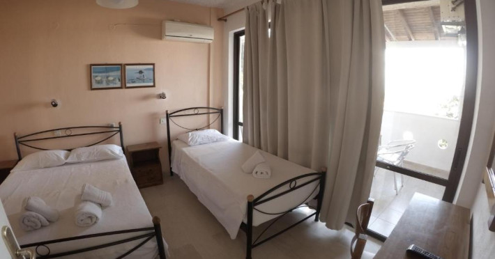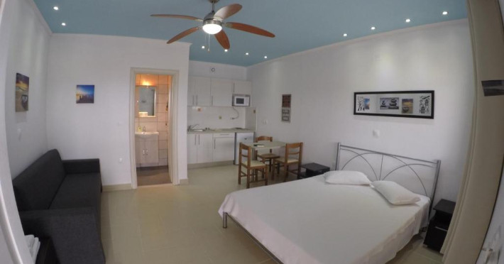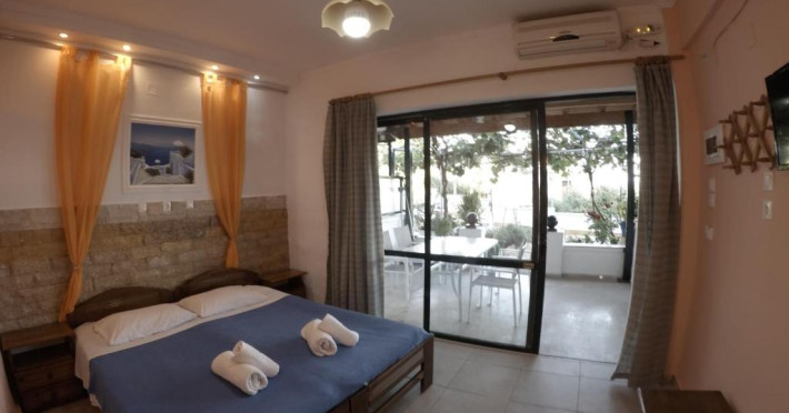 Sunt disponibile 18 camere. Unele camere au balcon cu vedere la mare sau la piscină. Fiecare cameră dispune de mașină pentru preparare cafea sau ceai. Camerele confortabile de la Andromaches Apartments au pardoseală de gresie/ marmură, aer condiționat, Tv cu canale prin satelit și seif. În camere există baie cu cadă sau duș prevăzută cu foehn. Oaspeții au acces gratuit la serviciul Wi-fi în camere. Toate camerele spațioase de la Andromaches Apartments au zonă de relaxare. Fiecare unitate de cazare include o chicinetă utilată cu frigider, plită de gătit și ustensile de bucătărie. De asemenea, este disponibilă o zonă de luat masa. Proprietatea oferă camere pentru familie cu o suprafață mai mare și un număr mai mare de paturi față de cele standard. Se pot rezerva de asemenea camere pentru nefumători.