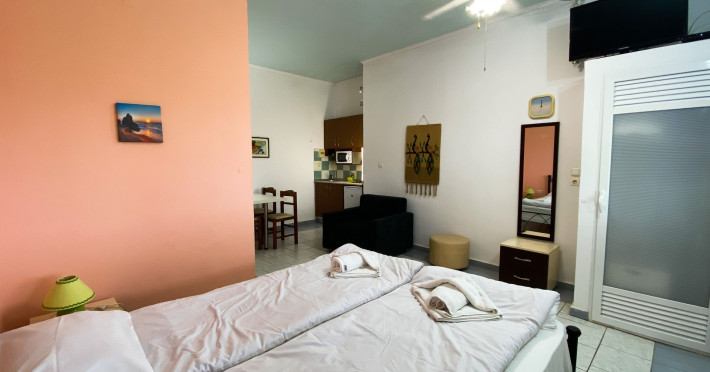 At Andromaches Holiday Apartments, our family and staff will provide you with a 'friendly touch' in order to feel as comfortable as you can. Relax under the Greek sun by the pool with the exceptional sea views, drink our delicious cocktails, try our tasteful snacks and stay connected with free wireless internet access. For your better entertainment, you can also watch your favorite movies or sports in the relaxing lounge offering HD Satellite TV.