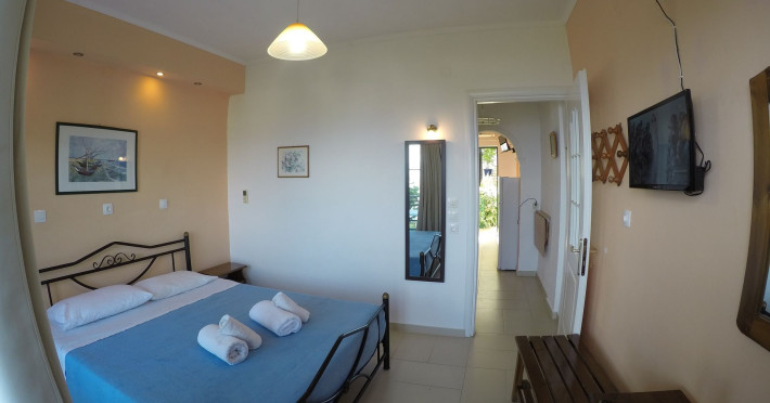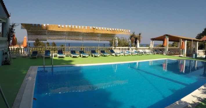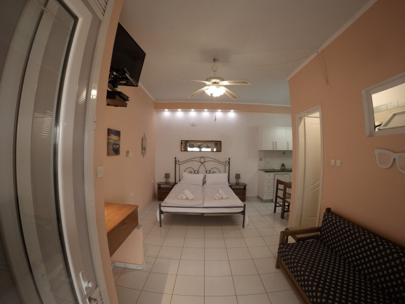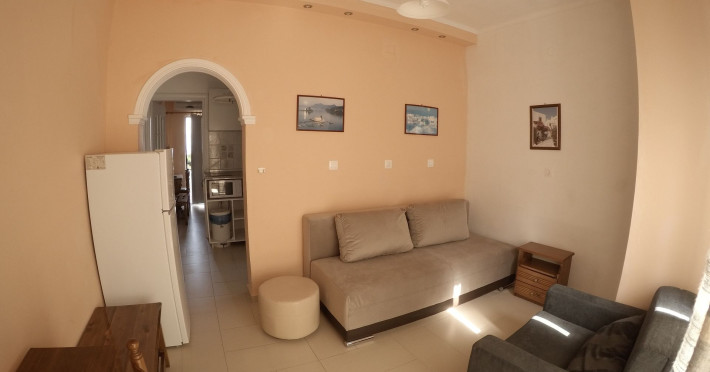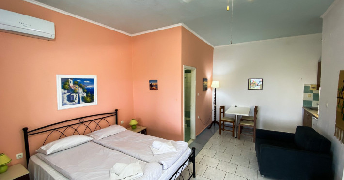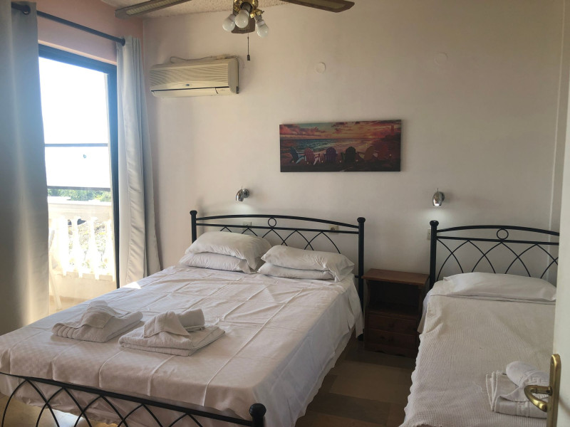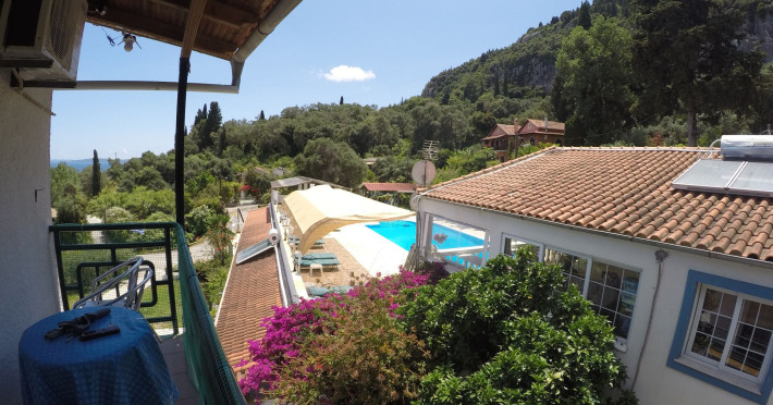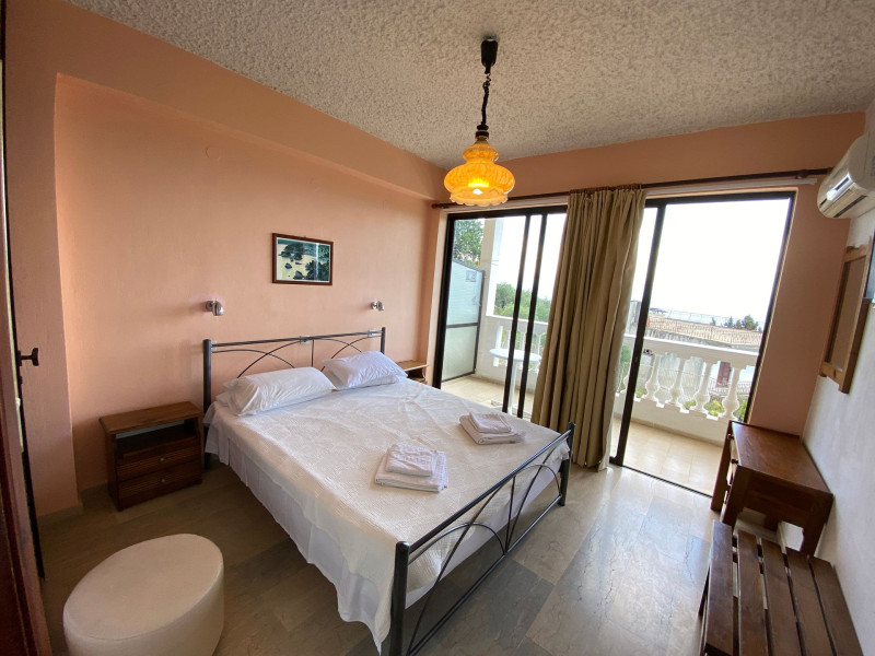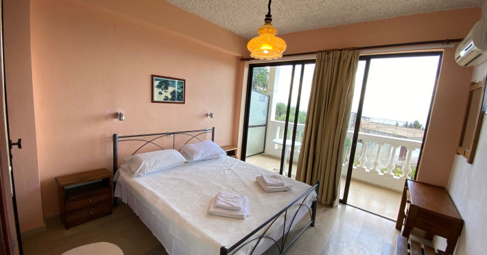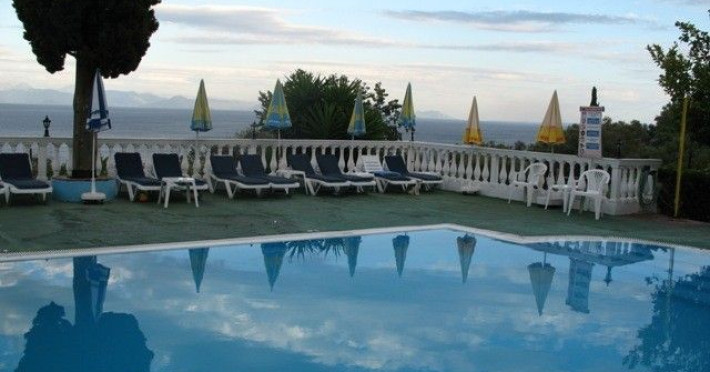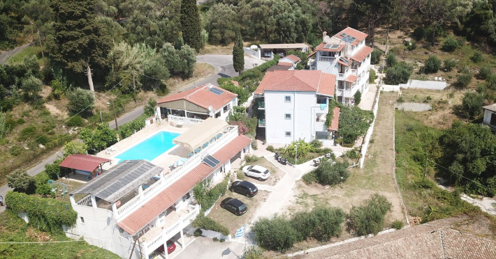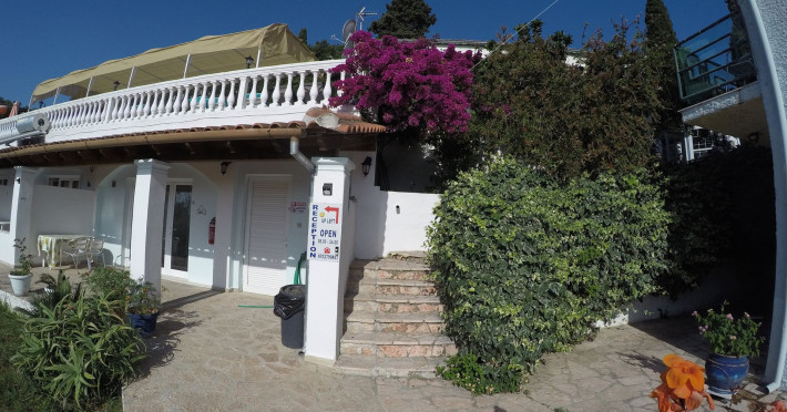 At Andromaches Holiday Apartments, our family and staff will provide you with a 'friendly touch' in order to feel as comfortable as you can. Relax under the Greek sun by the pool with the exceptional sea views, drink our delicious cocktails, try our tasteful snacks and stay connected with free wireless internet access. For your better entertainment, you can also watch your favorite movies or sports in the relaxing lounge offering HD Satellite TV. Teenagers and children will enjoy the environment surrounded by lush gardens while spending most of their time swimming in the pool. For those who look for recreation or cultural activities, there are numerous attractions to visit such as the local beach of Benitses where you can enjoy any kind of water sports, the maritime museum, the sources for the ancient Aqueduct, the Achillion Palace (the palace of Queen Sissy and Austrian Kaiser) as well as the ruins of Roman baths with their mosaic floors. For your entertainment, you can walk to the local village of Benitses with various choices for dining and drinking. Daily cruises to Paxos Island, Sivota, Parga and Albania are also available. Being close in the heart of Benitses village, everything extra you could possibly wish is right at your fingertips. Pets are not allowed! We rent cars, motorboats, motorbikes, pushbikes, trips by boat or bus. The sea view swimming pool is open from May 01 until Oct. 20. (can be changed) All apartments are sea view, all WC with shower, all with full equipt kitchenette, safe box, parking, sat tv, heating and cooling room controlled air condition.Datorita dinamicitatii domeniului disponibilitatea ofertelor se modifica de la un moment la altul. De aceea ofertele sunt valabile in limita locurilor disponibile. Agentia nu este responsabila pentru eventualele neconcordante care pot aparea intre informatiile privind tarifele si alte detalii din site si informatiile primite in agentie. In aceste cazuri vor avea prioritate, intotdeauna, informatiile primite in agentie.