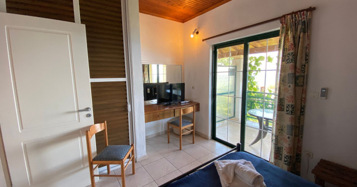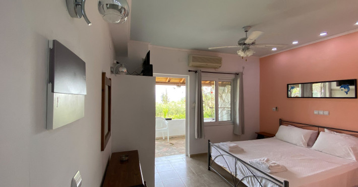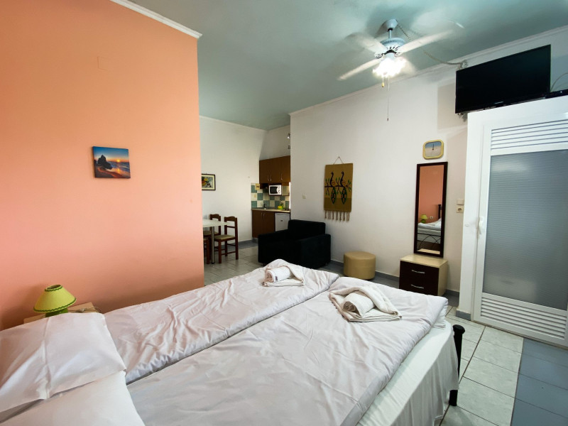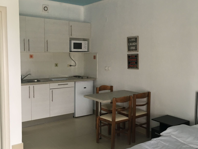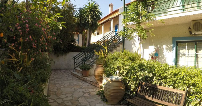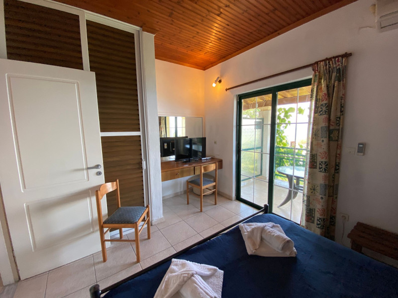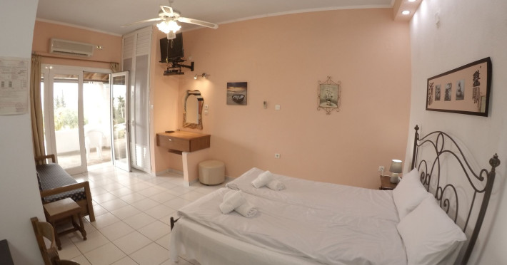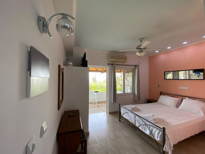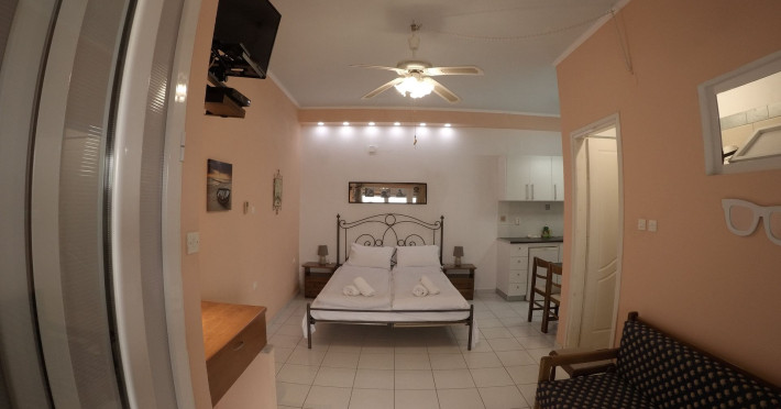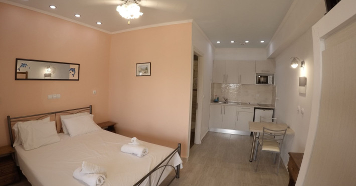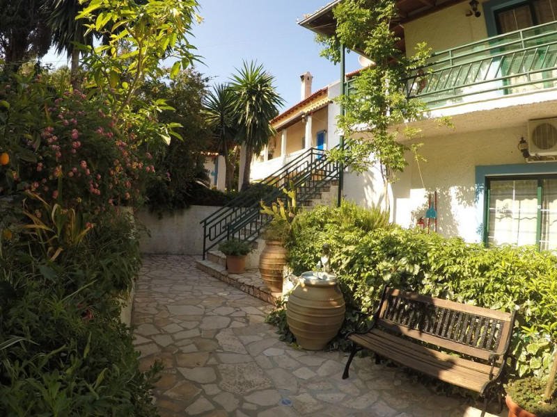 At Andromaches Holiday Apartments, our family and staff will provide you with a 'friendly touch' in order to feel as comfortable as you can. Relax under the Greek sun by the pool with the exceptional sea views, drink our delicious cocktails, try our tasteful snacks and stay connected with free wireless internet access. For your better entertainment, you can also watch your favorite movies or sports in the relaxing lounge offering HD Satellite TV. Teenagers and children will enjoy the environment surrounded by lush gardens while spending most of their time swimming in the pool. For those who look for recreation or cultural activities, there are numerous attractions to visit such as the local beach of Benitses where you can enjoy any kind of water sports, the maritime museum, the sources for the ancient Aqueduct, the Achillion Palace (the palace of Queen Sissy and Austrian Kaiser) as well as the ruins of Roman baths with their mosaic floors. For your entertainment, you can walk to the local village of Benitses with various choices for dining and drinking. Daily cruises to Paxos Island, Sivota, Parga and Albania are also available. Being close in the heart of Benitses village, everything extra you could possibly wish is right at your fingertips. Pets are not allowed! We rent cars, motorboats, motorbikes, pushbikes, trips by boat or bus. The sea view swimming pool is open from May 01 until Oct. 20. (can be changed) All apartments are sea view, all WC with shower, all with full equipt kitchenette, safe box, parking, sat tv, heating and cooling room controlled air condition.Datorita dinamicitatii domeniului disponibilitatea ofertelor se modifica de la un moment la altul. De aceea ofertele sunt valabile in limita locurilor disponibile. Agentia nu este responsabila pentru eventualele neconcordante care pot aparea intre informatiile privind tarifele si alte detalii din site si informatiile primite in agentie. In aceste cazuri vor avea prioritate, intotdeauna, informatiile primite in agentie.