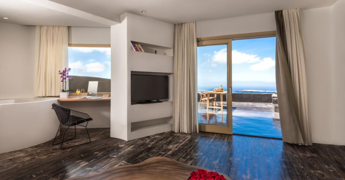 Andronis Concept Wellness Resort este o proprietate de 5 stele situată în Imerovigli (Santorini), care oferă piscină în aer liber, terasă cu șezlonguri și umbrele, precum și facilități spa. Facilitățile de la Andronis Concept Wellness Resort includ sală de fitness și teren de tenis. Proprietatea are, de asemenea, servicii de recepție cu program non - stop și concierge. Se oferă acces gratuit la internet Wi-fi în spațiile publice. Parcarea este disponibilă la proprietate gratuit.