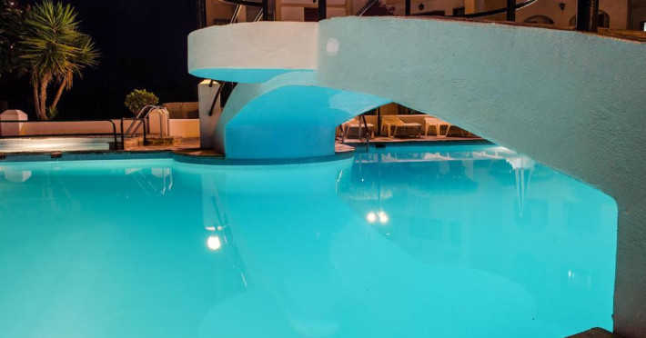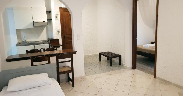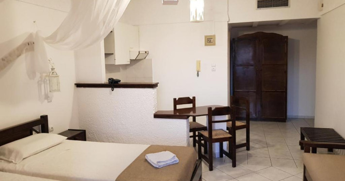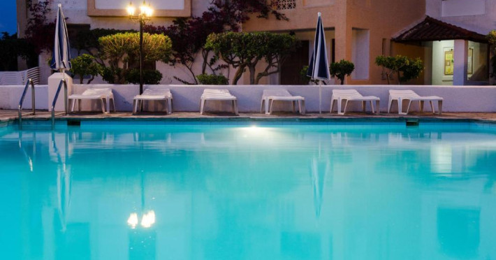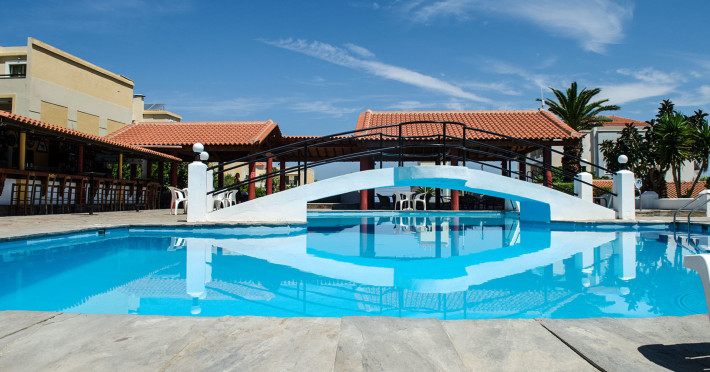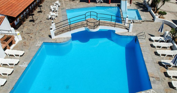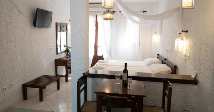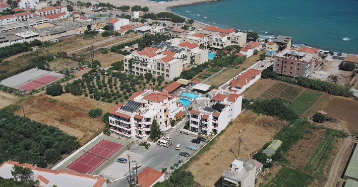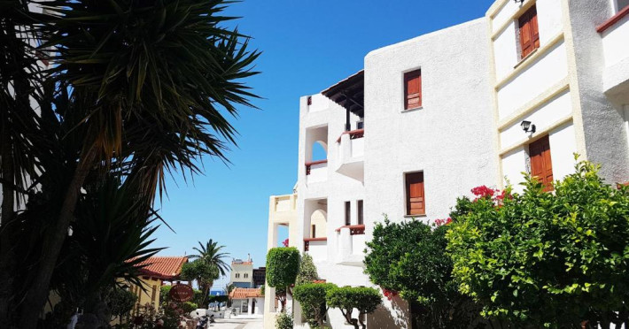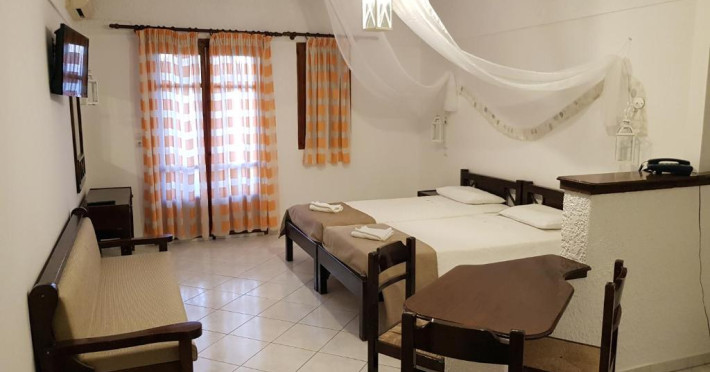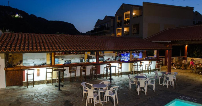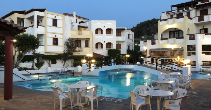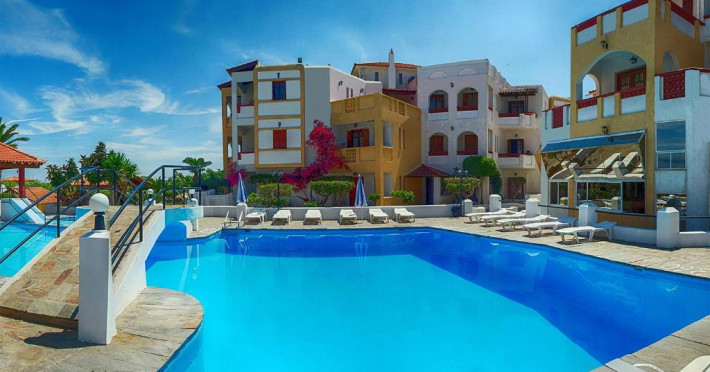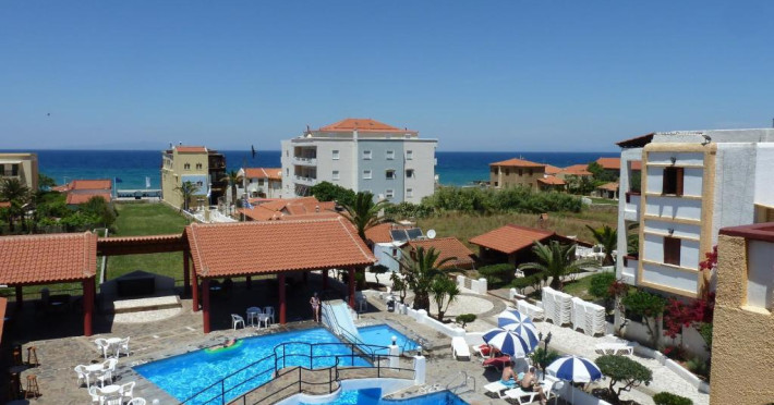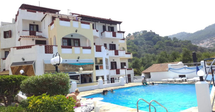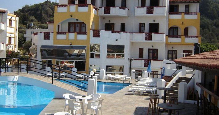 Hotelul pentru familii se află în Karlovasi, chiar pe plajă.