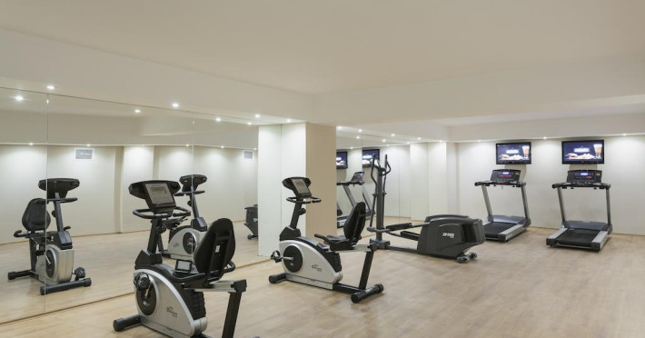 O sală de fitness cu echipamente necesare pentru o gamă variată de exerciții fizice este la dispoziția celor interesați.