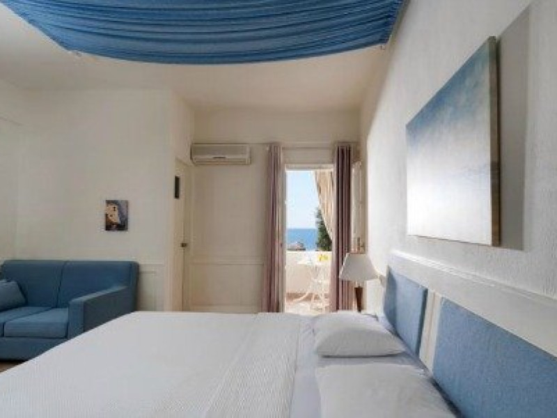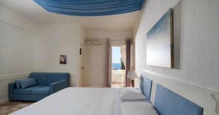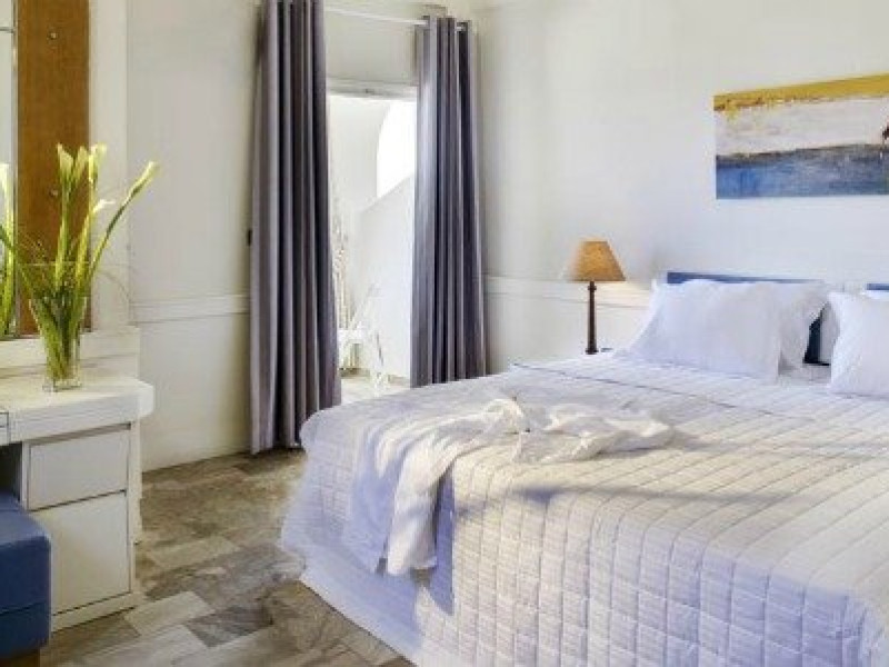 Descriere HOTEL ANEMOS:Hotelul este format din 28 de camere decorate elegant in conformitate cu stilul cicladic in culorile specifice insulei, alb si albastru.