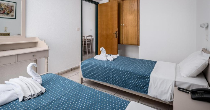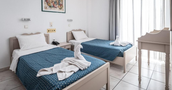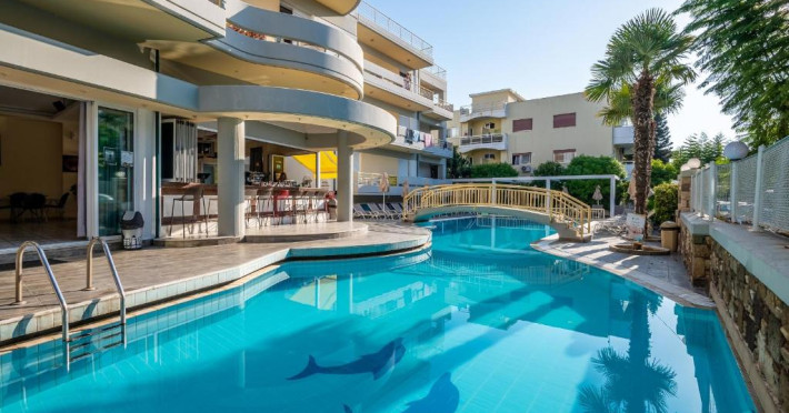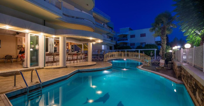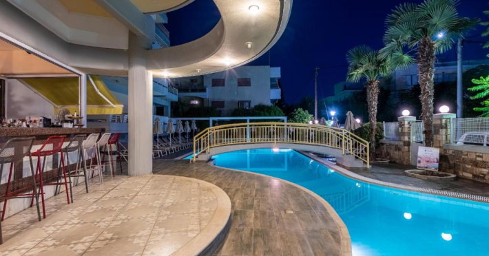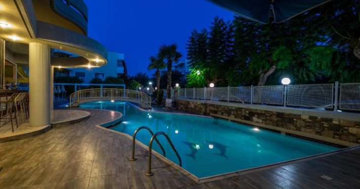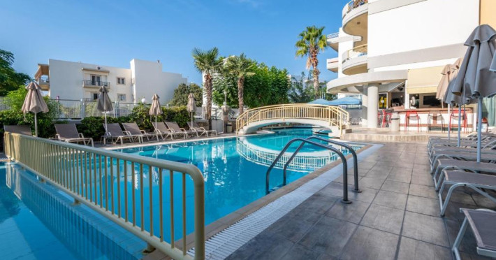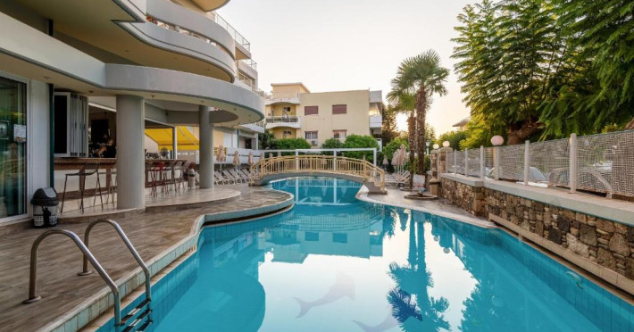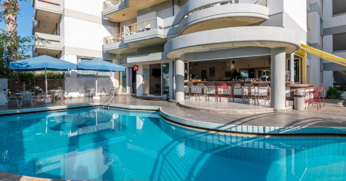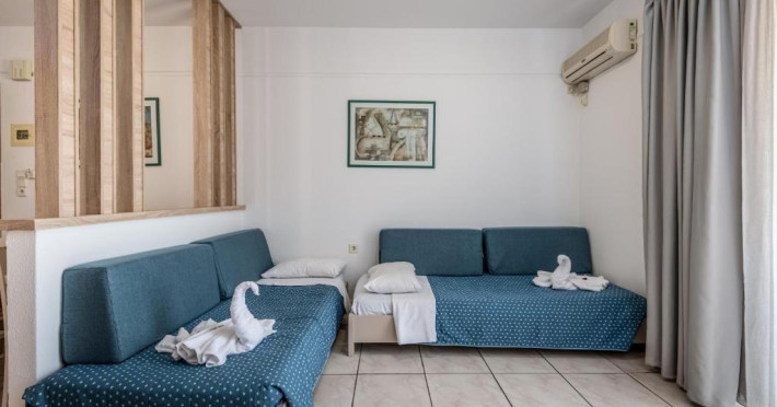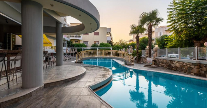 Angela se găsește la mai puțin de 1 km de Plaja Lambi și oferă o piscină in aer liber, o grădină și unități de cazare cu aer condiționat, WiFi gratuit și balcon.