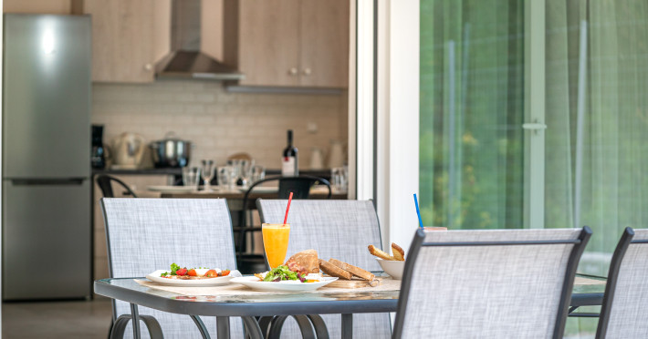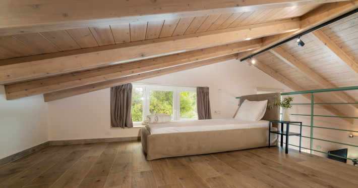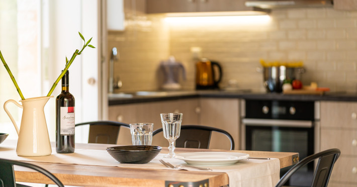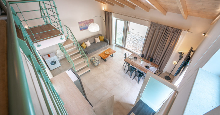 The maisonettes have two bathrooms, a fully equipped kitchen, comfortable living room and an outdoor area overlooking the green mountain surrounded by olive groves. They are an ideal choices for families or small groups of friends.