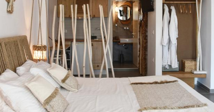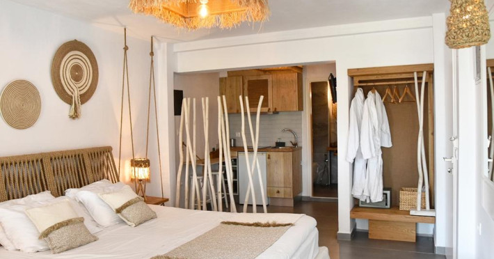Sunt disponibile 7 camere. În camere există baie cu articole de toaletă gratuite. Camerele confortabile de la Angelos sunt dotate cu pardoseală de gresie/ marmură, aer condiționat, Tv și seif. Unele camere au balcon cu vedere la mare, unde oaspeții pot admira apusul sau răsăritul soarelui. Fiecare cameră dispune de cană-fierbător. Oaspeții au acces gratuit la serviciul Wi-fi în camere. Curățenia in cameră se face zilnic. Toate camerele spațioase de la Angelos au zonă de relaxare cu canapea, ceea ce oferă un plus de confort. Fiecare unitate de cazare include o chicinetă utilată cu frigider și ustensile de bucătărie. De asemenea, este disponibilă o zonă de luat masa. Proprietatea oferă camere pentru familie cu o suprafață mai mare și un număr mai mare de paturi față de cele standard.