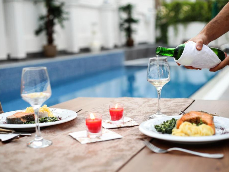 Restaurantul hotelului servește preparate din bucătăria turcească și internațională, iar barul de la piscină oferă răcoritoare și cocktailuri pe tot parcursul zilei. Conexiunea Wi-Fi gratuită este disponibilă in toate zonele hotelului.