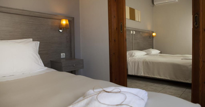 Cel mai apropiat aeroport este Aeroportul Souda, situat la o distanță de 21 km. La cerere proprietatea organizează transfer la/de la aeroport contra cost.