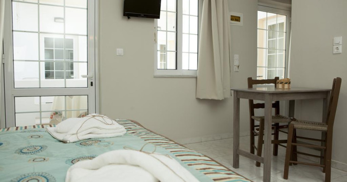 Sunt disponibile 15 camere. Camerele au balcon cu masă și scaune unde pot fi petrecute momente de relaxare. În camere există baie cu cadă sau duș ce are în dotare foehn și articole de toaletă gratuite. Camerele confortabile de la Anna Katerina Apartments sunt dotate cu pardoseală de gresie/ marmură, aer condiționat, Tv și seif. Fiecare cameră dispune de mașină pentru preparare cafea sau ceai și fierbător Oaspeții au acces gratuit la serviciul Wi-fi în camere. Toate camerele spațioase de la Anna Katerina Apartments au zonă de relaxare cu canapea, ceea ce oferă un plus de confort. Fiecare unitate de cazare include o chicinetă utilată cu frigider, plită de gătit și ustensile de bucătărie. Proprietatea oferă camere pentru familie cu o suprafață mai mare și un număr mai mare de paturi față de cele standard. Se pot rezerva de asemenea camere pentru nefumători.