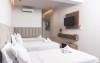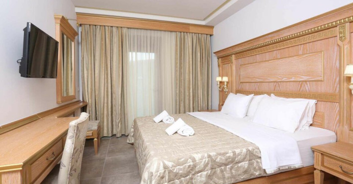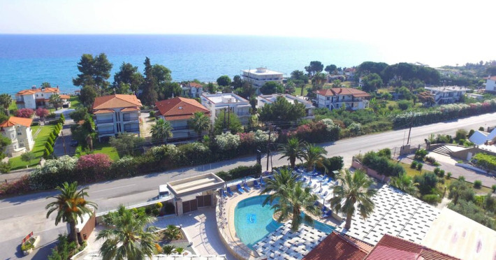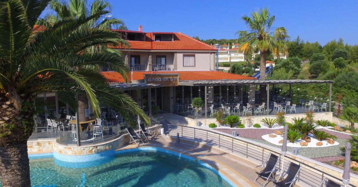 Anna Maria Paradise is located at the entrance to Pefkohori, and provides easy access to the village, as well as to the beach which is about 200 meters away. All rooms have been renovated recently to ensure a memorable holiday. Apart from the reception, there is a restaurante serving delicious meals and snacks during the day, an outdoor pool with section for children, pool bar, sunbeds umbrellas... All rooms are newly renovated, they have been decorated in a modern way and have the things you need for a relaxing holiday. Hotel services and facilities include fax©, lobby, baggage room, parking, doctor on call, car rental, high chairs in the restaurant for the kids, swimming pool, pool bar, snack bar, restaurant, live music nights....Hotel offers half board service (buffet style). ***Reception works from 07.00-02.00h ROOMS: Deluxe room 2-3 pax, max 2 adults Family studio garden view 1-4 pax, max 2 adults Family studio sea view 1-4 pax, max 2 adults Family suite sea view 1-4 pax, max 4 adults Standard room garden view 1-3 pax, max 3 adults Superior room garden view 2-3 pax, max 2 adults Superior room sea view 2-3 pax, max 2 adults Two bedroom family room ground floor 1-4 pax, max 4 adultsDatorita dinamicitatii domeniului disponibilitatea ofertelor se modifica de la un moment la altul. De aceea ofertele sunt valabile in limita locurilor disponibile. Agentia nu este responsabila pentru eventualele neconcordante care pot aparea intre informatiile privind tarifele si alte detalii din site si informatiile primite in agentie. In aceste cazuri vor avea prioritate, intotdeauna, informatiile primite in agentie.