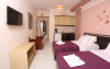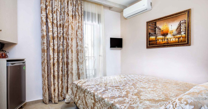 Facilitati camere: Hotelul dispune de 45 de camere : TV, aer conditionat, internet Wi-Fi, uscator de par, fierbator, baie cu dus si balcon.