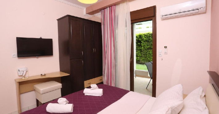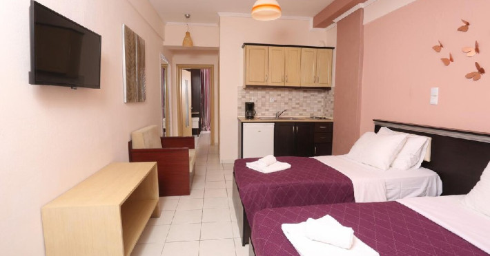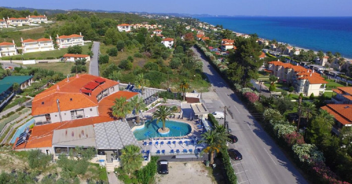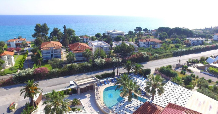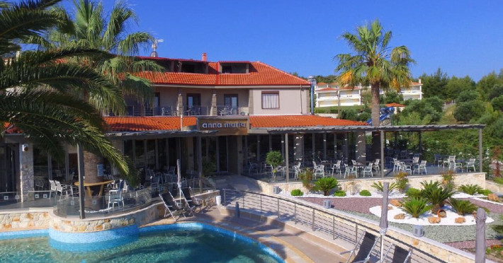 Locatie: Anna Maria Paradise Hotel se afla in zona statiunii Pefkohori, chiar la intrarea in statiune. Distanta fata de centru , magazine, taverne este de aproximativ 300 de metri.