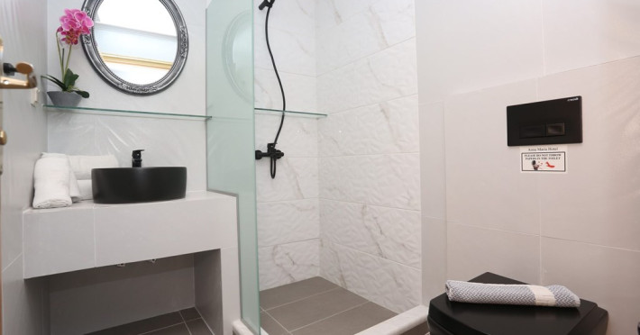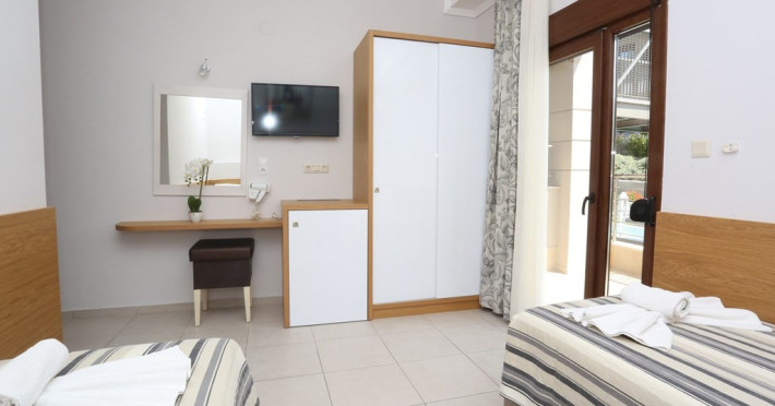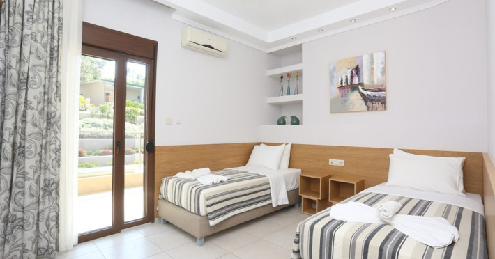 Sunt disponibile 45 camere. Camerele de la Anna Maria Paradise au în dotare Tv cu canale prin satelit și seif. În camere există baie cu cadă sau duș prevăzută cu foehn. Unele camere au balcon cu vedere la mare sau la piscină. Oaspeții au acces gratuit la serviciul Wi-fi în camere. Fiecare unitate de cazare include o chicinetă utilată cu frigider, plită de gătit și ustensile de bucătărie.