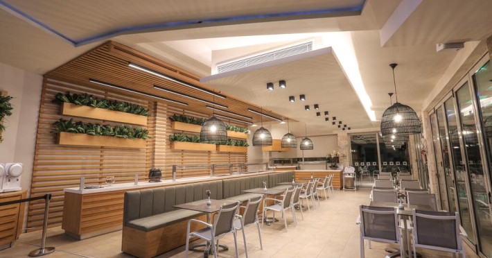 Anna Maria Paradise servește zilnic un mic dejun tip bufet în zona de luat masa. La proprietate există un snack-bar care oferă cafea, băuturi și gustări. Masa poate fi servită atât în interior, cît si în aer liber, pe terasă, în funcție de vreme. Oaspeţii îşi pot pregăti micul dejun şi alte mese şi le pot savura chiar pe balcon.