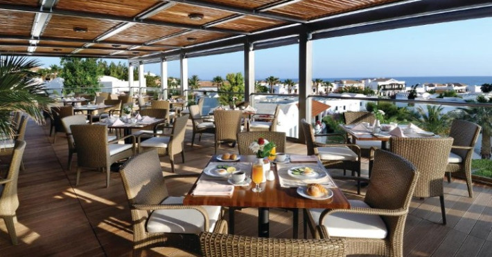 Restaurantul Ambrosia vă așteaptă cu mese tip bufet și o vedere impresionantă către mare, în timp ce taverna Athena vă servește preparate grecești și internaționale în apropierea piscinei. Cele trei baruri, situate în hol, la piscină și pe plajă, vă așteaptă cu sucuri proaspete și cocktailuri delicioase.