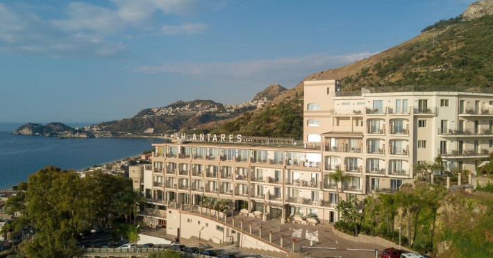 Localizare: complexul hotelier este situat in statiunea Letojanni, la aprox. 60 km distanta de aeroportul Catania si la 6 km distanta de statiunea Taormina. Hotelul este situat pe un deal, ceea ce confera avantajul unei frumoase vederi panoramice.Facilitati hotel: bar OlimpoLe Terazze situat in incinta corpului Olimpo, bar American Antares, situat in incinta corpului Antares, restaurant principal, pizzeria a la carte La Bouganville, piscina in aer liber, piscina acoperita (cu plata), camera de bagaje, incalzire, funicular care face legatura intre corpurile hotelului situate la altitudini diferite, internet (cu plata). Hotelul Antares este situat in partea de jos a complexului Antares - Olimpo - Le Terrazze.Clasificarea oficiala a hotelului in Italia: 4*.