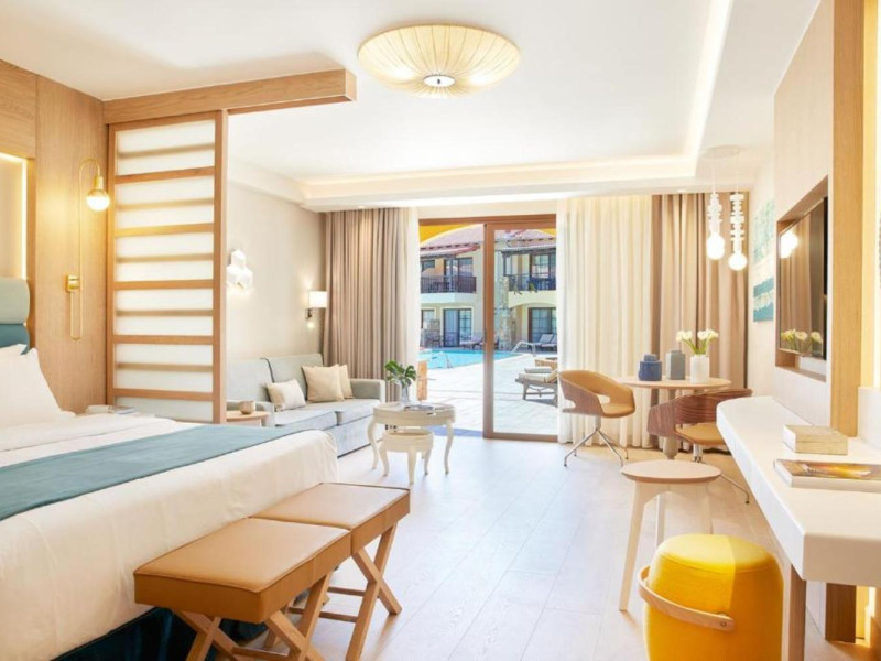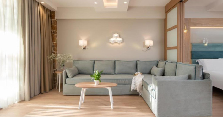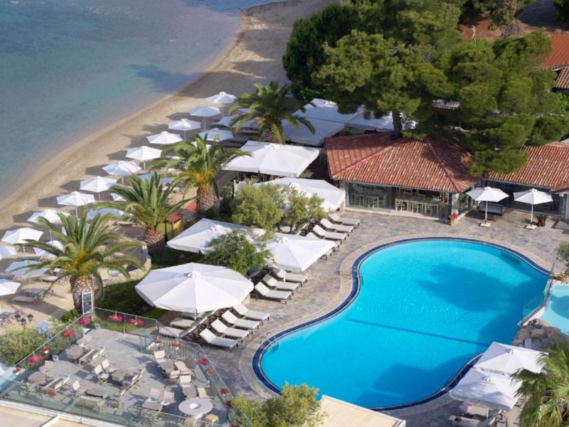 Anthemus Sea Beach Hotel amp; Spa located on a site of 38.000m lies embosomed in a picturesque bay along the tranquil Elia Coast of Sithonia in Halkidiki, right next to a sandy beach awarded with the Blue Flag of the European Community. Our shuttle bus takes you daily (except Sundays) to the nearby villages of Neos Marmaras or Nikiti.Datorita dinamicitatii domeniului disponibilitatea ofertelor se modifica de la un moment la altul. De aceea ofertele sunt valabile in limita locurilor disponibile. Agentia nu este responsabila pentru eventualele neconcordante care pot aparea intre informatiile privind tarifele si alte detalii din site si informatiile primite in agentie. In aceste cazuri vor avea prioritate, intotdeauna, informatiile primite in agentie.
