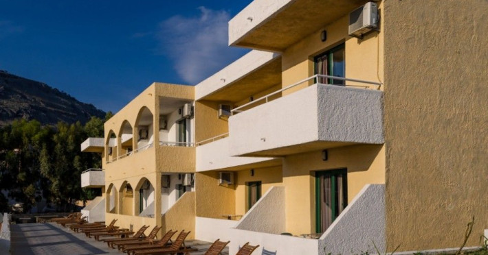Anthi Maria Apartments, situated on the sandy beach of Pefkos in Rhodes Island, offers accommodations with furnished balconies overlooking the bay. Apartments feature well-equipped kitchenettes with fridge. Each self-catered apartment is spacious and bright with a dining table. Guests at Anthi Maria Apartments can enjoy also the barbecue facilities.Among vineyards, pine, olive and fig trees, Pefkos is an ideal location for a relaxing break. The village is spread along the main coastal road offering a good choice of taverns, bars and shops. Bus, taxi, pharmacy and doctor services are in close proximity. Pefkos beach is equipped with free lounge chairs, umbrellas and outdoor showers.Free parking is available on site. Rhodes Airport is 23 miles away.Anthi Maria Apartments, situated on the sandy beach of Pefkos in Rhodes Island, offers accommodations with furnished balconies overlooking the bay. Apartments feature well-equipped kitchenettes with fridge. Each self-catered apartment is spacious and bright with a dining table. Guests at Anthi Maria Apartments can enjoy also the barbecue facilities.Among vineyards, pine, olive and fig trees, Pefkos is an ideal location for a relaxing break. The village is spread along the main coastal road offering a good choice of taverns, bars and shops. Bus, taxi, pharmacy and doctor services are in close proximity. Pefkos beach is equipped with free lounge chairs, umbrellas and outdoor showers.Free parking is available on site. Rhodes Airport is 23 miles away.