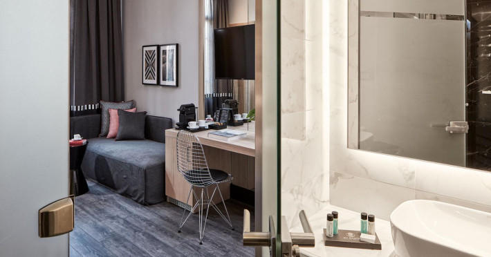 Antigon Urban Chic Hotel presents an inspiring picture of the historical Center of Thessaloniki, coupled with its reputation for impeccable service, promises a home away from home. This unique 5-star boutique hotel in Thessaloniki offers its guests a choice of 38 stylish and carefully designed rooms & suites equipped with all modern facilities and comforts. Antigon Urban Chic Hotel features all facilities of a luxury 5-star hotel, including a bar restaurant in a glazed atrium over Ancient ruins of the Macedonian & Roman Empire, supreme concierge service, and conference facilities. Location: The hotel is situated within minutes walk from the Central square of Thessaloniki “Aristotelous Sq.”, Roman Forum and Ancient Agora square, surrounded by the city's most charming places and routes. distance from town center: 0 m distance from port: 0,4 km distance from airport: 12 km distance from the closest seaside: 0,4 km Antigon Bar & Restaurant: Situated on the ground floor, in a glazed atrium over Ancient ruins of Macedonian Empire, introduces a vibrant lobby culture featuring the city's multicultural living. In the restaurant, the buffet breakfast is served on a daily basis.Datorita dinamicitatii domeniului disponibilitatea ofertelor se modifica de la un moment la altul. De aceea ofertele sunt valabile in limita locurilor disponibile. Agentia nu este responsabila pentru eventualele neconcordante care pot aparea intre informatiile privind tarifele si alte detalii din site si informatiile primite in agentie. In aceste cazuri vor avea prioritate, intotdeauna, informatiile primite in agentie.