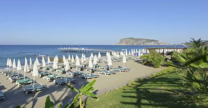 Hotelul este situat in statiunea Alanya peste drum de plaja proprie. Distanta pana la aeroportul din Antalya este de 122 km si pana in centrul orasului Alanya sunt 3 km.