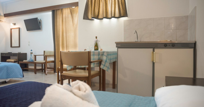 În camere există o bucătărie și o baie; aparatul de aer condiționat creează o atmosferă plăcută. Majoritatea camerelor dispun de un balcon ce oferă mai mult spațiu de odihnă și relaxare pe timpul șederii. Chicineta este echipată cu un frigider. Un telefon cu apelare directă, canale prin satelit și WiFi (gratuit) creează confort optim. În baia dotată cu un duș și o cadă dispune de un uscător de păr. În plus, clienții au la dispoziție articole de cosmetică în băi.