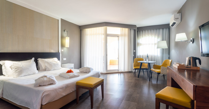 The hotel AP Oriental Beach is located approximately 50 m from a public sandy beach. The nearest bars and restaurants can be found at a distance of around 100 m. The old town is around 3 km away. The nearest shops you can reach within around 200 m, a supermarket is around 100 m away. There is a shuttle between the hotel and the airport (for a fee). Nearby there is a disco which offers entertainment in high season. The beach is awarded a blue flag. Here, there are cushions and beach towels for a fee available. The seasonally air-conditioned hotel is equipped with a 24h reception (check-in is possible around the clock), a lobby, Wi-Fi, internet access, a lift, a first aid kit as well as a TV lounge with satellite TV. In the outdoor area of the property you will find a garden as well as a pool (open all year), where you can rent sun umbrellas and pool towels for a fee. You can store your valuables in the safe, and your luggage in the hotel`s storage room. In addition, the hotel AP Oriental Beach is video-monitored 24h a day. There is also a laundry service available at an additional cost to customers. Ironing equipment can be borrowed at the hotel. For your comfort the hotel page will ensure you are looked after. If necessary, you can contact the medical centre at any time (for a fee). The energy supply is 220 Volts. If you want to explore the holiday region, you can use the car and motorbike rental service close to the hotel (extra fee). In addition, the hotel sells tickets for excursions. For guests on their honeymoon, the hotel has special offers such as a romantically-decorated room, personalised rooms/articles, rooms with a particularly romantic location and view, romantic dishes in the restaurant, champagne, a basket of fruit or flowers in the room. In your hotel, a lot of focus is placed on sustainability. This includes the hotel`s own recycling bins, the provision of soap, shampoo and lotion dispensers, a central room air-conditioning and environmentally-friendly cleaning. That is why the hotel AP Oriental Beach was also awarded a sustainability certificate. The hotel requires that all guests pay a deposit upon arrival. American Express, Euro/Master Card, Visa and EC cards are accepted as means of payment. Due to its barrier-free facilities , such as a revolving door in the entrance area, a hotel door that can be opened manually, barrier-free entrances, wheelchair accessible rooms and a handrail in the elevator, the hotel is also suitable for wheelchair users. Catering As catering services the hotel offers half board, full board and breakfast only. Breakfast is offered continental or from the buffet. Enjoy your lunch as a set meal. Dinner is also served as a buffet or as a set meal. For the meals, there are a buffet restaurant with terrace (calorie-reduced, gluten-free and vegetarian dishes) and a bar as well as the pool bar. For dinner, guests are asked to wear appropriate clothing in the restaurant. Distances- Nearest town: approximately at 2,5 km