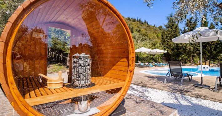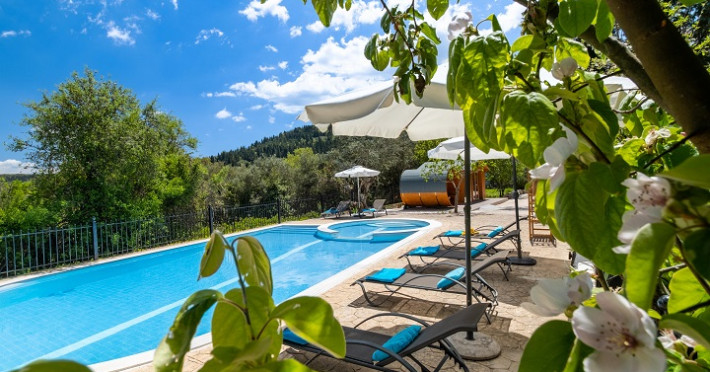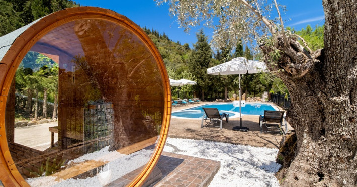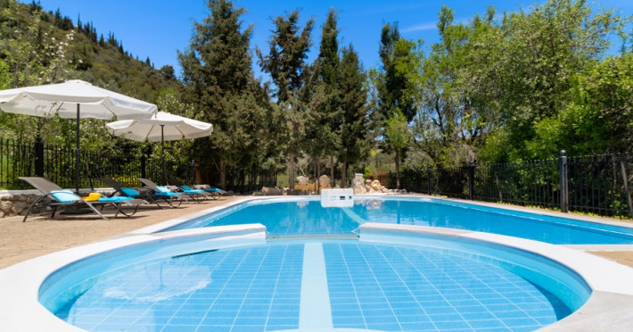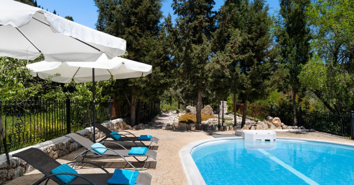 The stone-built complex “Apanema” is a luxurious traditional guest-house. It is located in a beautiful, picturesque village in Lefkada towards the centre of the island, called Asprogerakata. Asprogerakata sits at 430m altitude, 9km from the town of Lefkada .