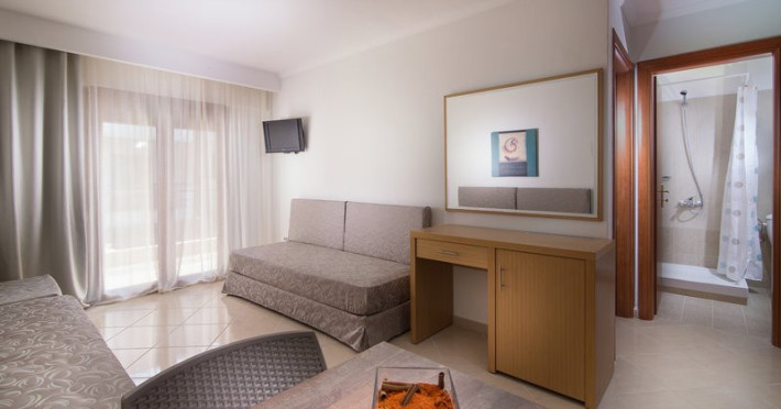 Apanemia Apartments by Flegra Collection, built in 2017, is the newest member by Flegra Collection that can facilitate larger families as per your request. Consisting of mainly one-bedroom apartments, they can accommodate up to five persons per room. Divided aa with a connecting door aa into one master-bedroom with a double bed and one living room with two single beds and one chair-bed, they are extremely comfortable for those who seek proximity and privacy at the same moment. Moreover, the kitchenette facilities within the living-room render the accommodation ideal for families with small children or companies who wish to enjoy their self-prepared meals by the balcony or terrace, right after the daily swim. The prime location of Apanemia Apartments within the village of Pefkohori, right next to the old square and the parking space right next to the property will make your stay in the cosmopolitan Pefkohori village as convenient as possible. **SPECIAL OFFER: For bookings between 22/3 aa 30/4/22 and stays between 15/4 aa 16/6/22 the 4th person the room is free of charge. For stays between 17/6 aa 14/7/22 the 3rd and 4th person in the room is free of charge. Please contact reservations in order to get and confirm the offer prior to booking.** **********Datorita dinamicitatii domeniului disponibilitatea ofertelor se modifica de la un moment la altul. De aceea ofertele sunt valabile in limita locurilor disponibile. Agentia nu este responsabila pentru eventualele neconcordante care pot aparea intre informatiile privind tarifele si alte detalii din site si informatiile primite in agentie. In aceste cazuri vor avea prioritate, intotdeauna, informatiile primite in agentie.