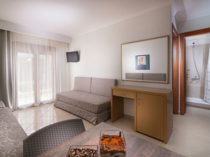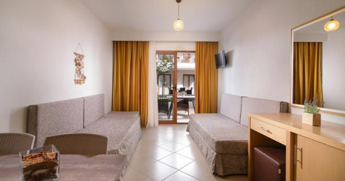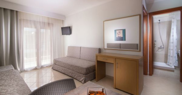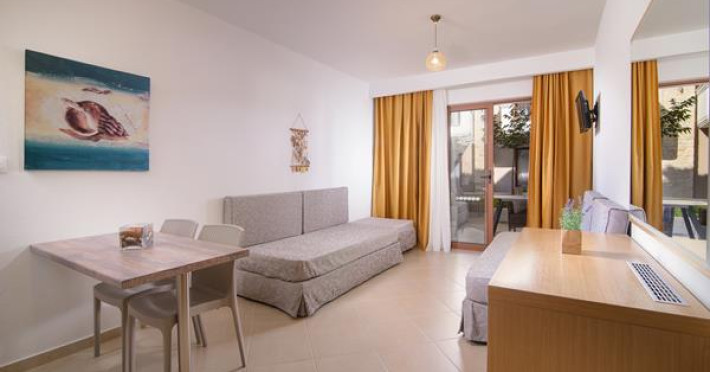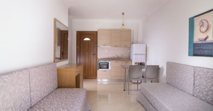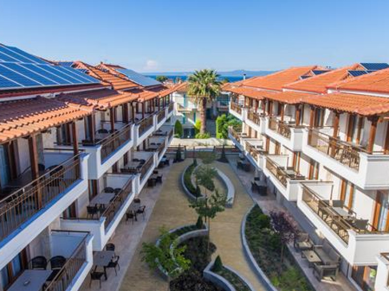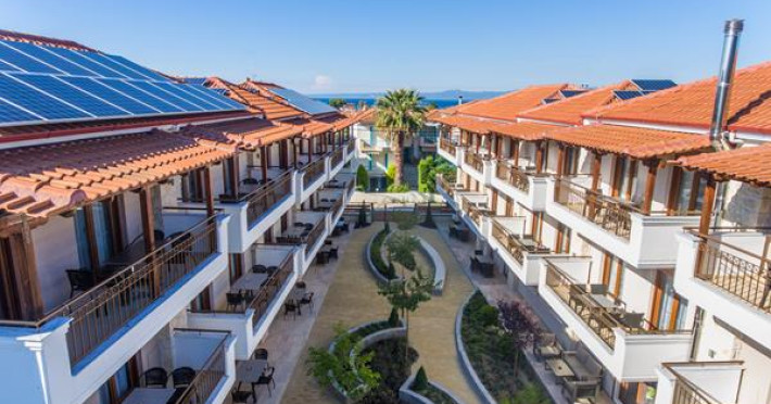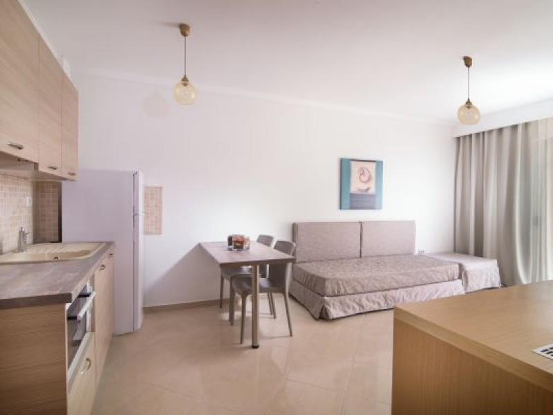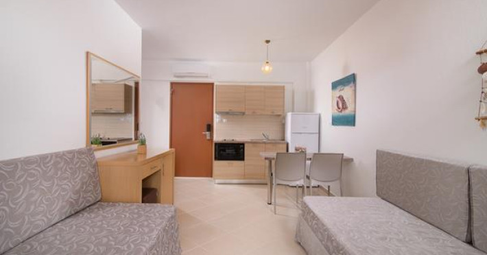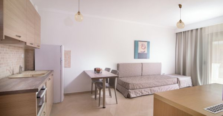 Apanemia Aparhotel -by Flegra Hotels- is located in the cosmopolitan village of Pefkohori in Kassandra, enjoying a privileged location in a quiet neighborhood away from the crowded center. Within short walking distance from the busiest pedestrian road, where most bars and restaurants are located, and only a few minutes away from the famous beaches of Toroneos Gulf, Apanemia apartments are situated in the upper town, very close to the traditional old square. It consists of 40 brand new, modern decorated and fully equipped with kitchen apartments.Full description